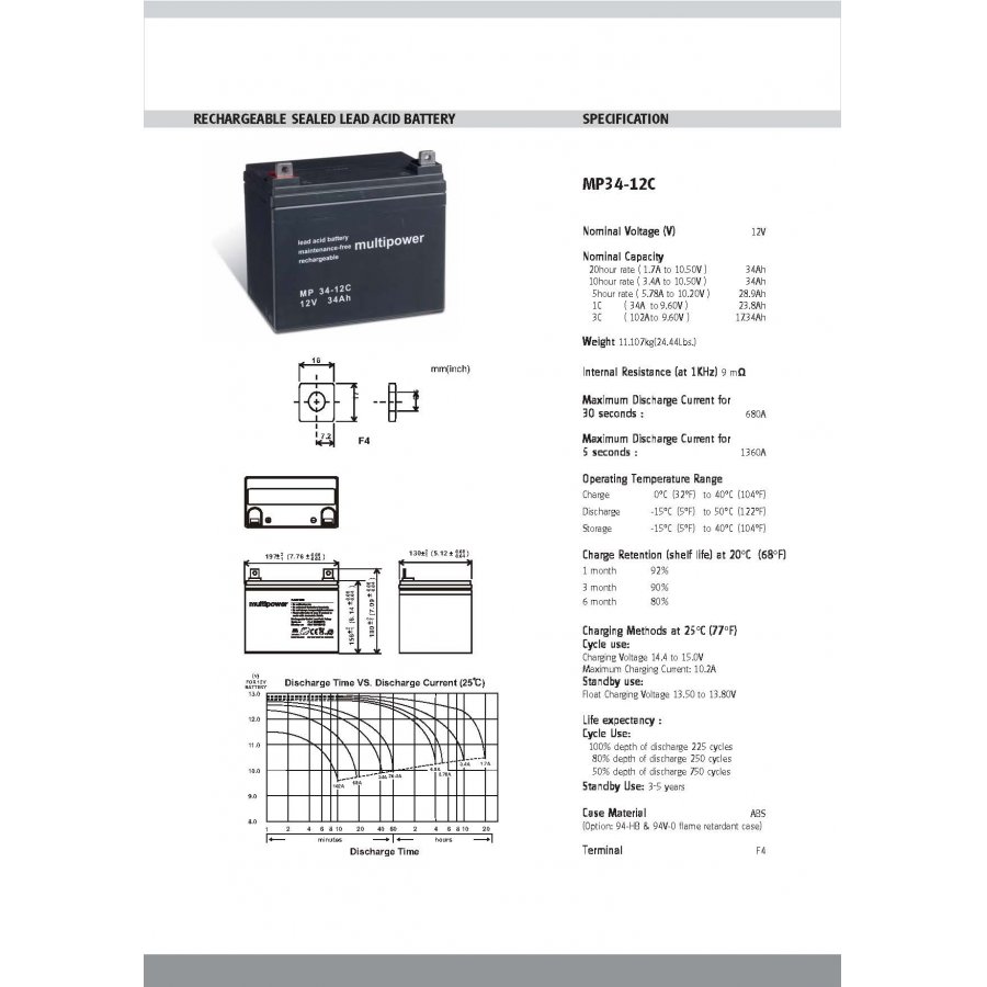 12V34Ah/408WhLead-Acidnegro196mm x 130mm x 180mmMultipower4062438101441
